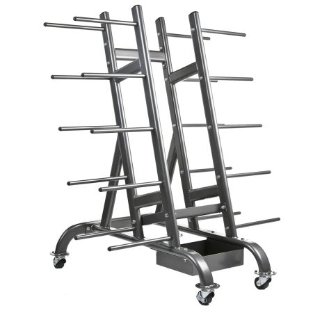 Ett skivstångställ används för att förvara skivstänger på ett säkert, smidigt och organiserat sätt. Det gör det lättare att hålla ordning i gymmet och enklare att komma åt rätt stång när du ska träna.