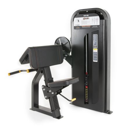 En bicepscurl-maskin är byggd för att isolera biceps genom en kontrollerad curl-rörelse. Maskinen har ofta en sittdyna, armstöd och handtag som gör att du kan fokusera helt på muskeln.