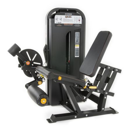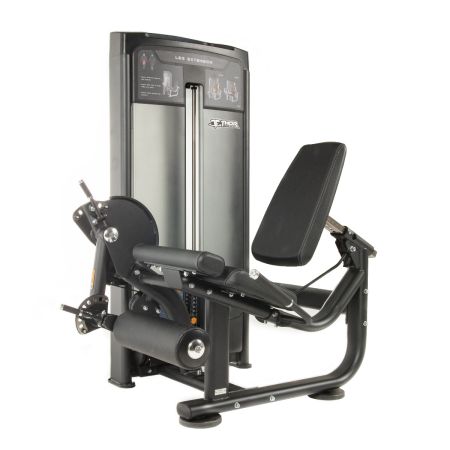 Benspark fokuserar på framsidan av låren. I denna maskin sitter du med böjda knän och sträcker ut benen mot motståndet, vilket isolerar quadriceps och ger effektiv träning av framsida lår.